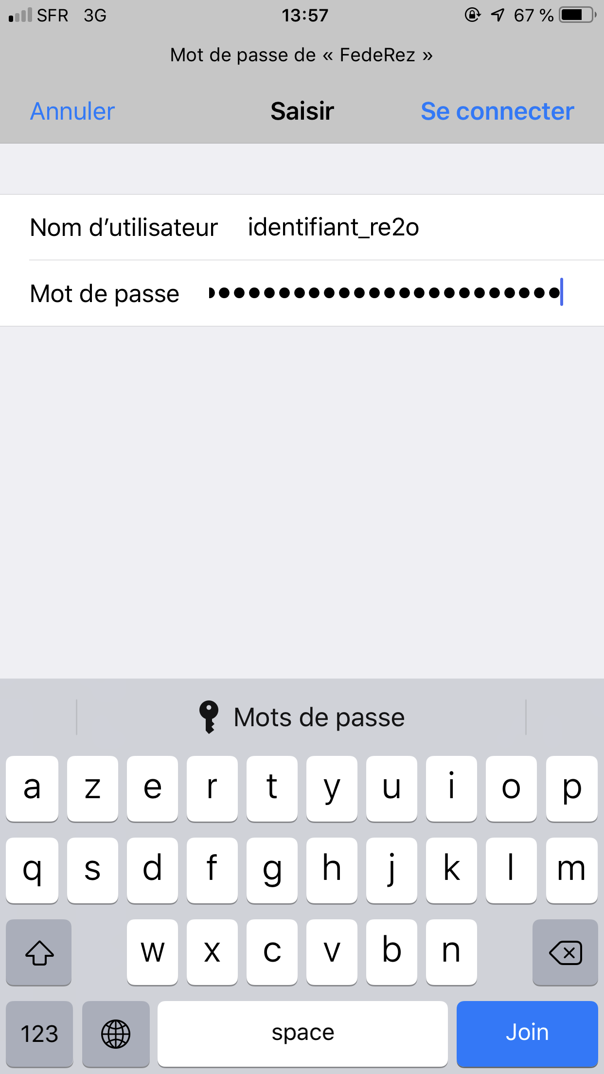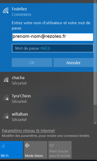 • Nom d'utilisateur : prenom-nom@rezoleo.fr (exemple : jean-dupont@rezoleo.fr)